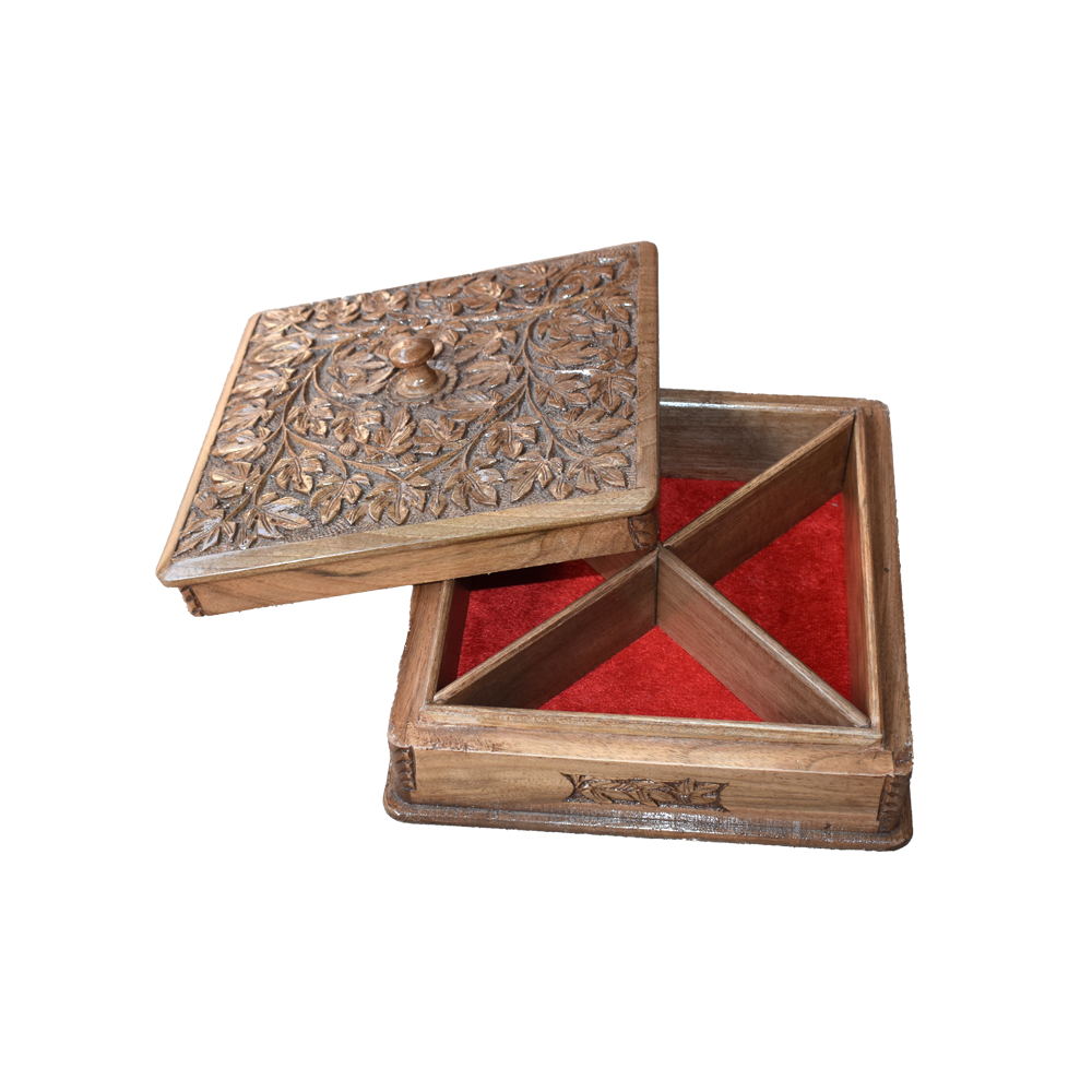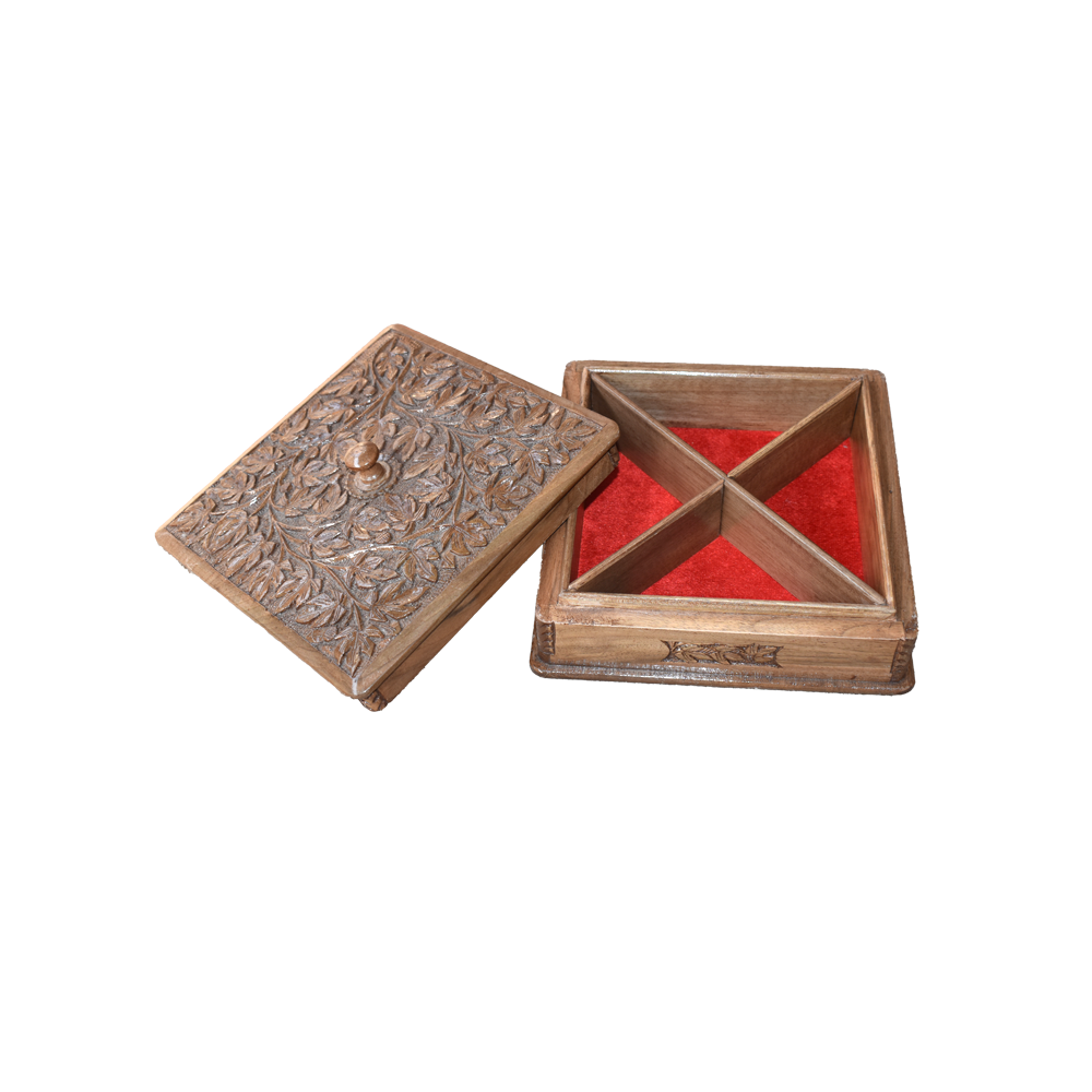 Kashmir Art and Craft Walnut Dry Fruit Multipurpose Box WW-DBX