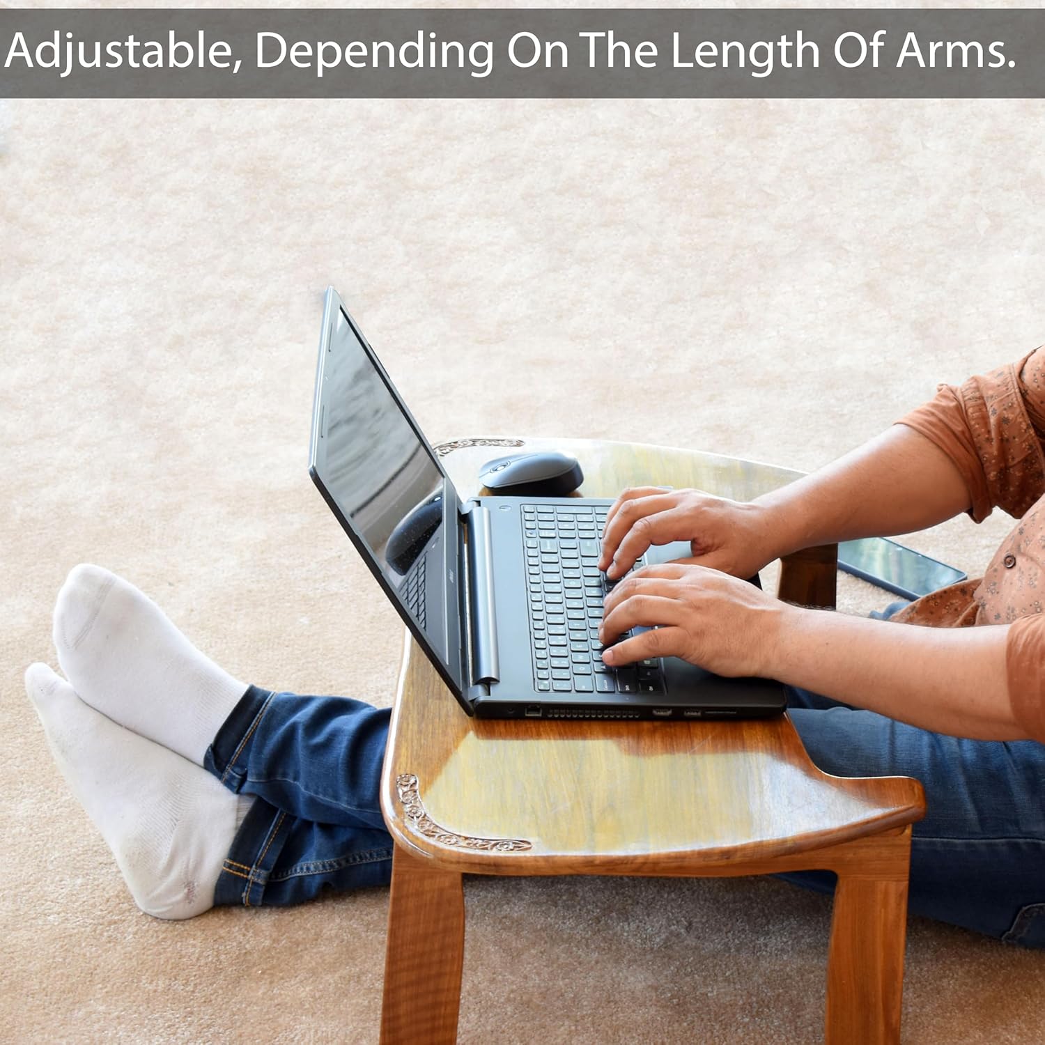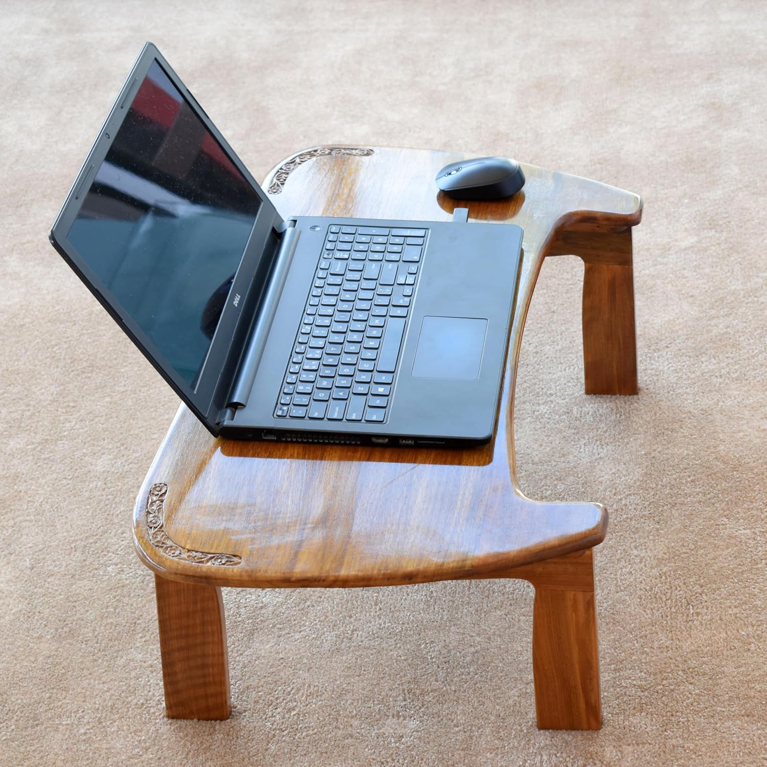 Sturdy and Stable Construction: Solid walnut wood construction provides stability and durability. Reinforced legs and joints ensure the desk can securely support the weight of your laptop and other items.